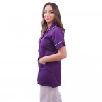 Bluza cu fermoar si rever, lejera, din material usor, placuta la atingere, nu se sifoneaza, isi pastreaza tinuta, croiala dreapta, cu maneca scurta, 2 buzunare mari aplicate la nivelul taliei si un buzunar la nivelul pieptului, lungime pana la nivelul soldurilor.