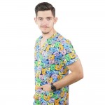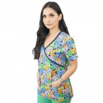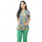 Bluza simpla destinata spitalelor, industriei alimentare sau farmaceutice, fiind ideala pentru utilizarea de catre medici si asistente in cabinete medicale, spitale, policlinici, etc. Aceasta bluza cu imprimeuri placute, in nuante calde, ofera un confort maxim si o rezistenta sporita. Este usor de intretinut, confectionata din materiale de calitate, cu croiala dreapta, cu maneca scurta, 2 buzunare inferioare aplicate frontal si slituri laterale. Lungimea este pana la nivelul soldurilor.