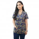 Bluza simpla destinata spitalelor, industriei alimentare sau farmaceutice, fiind ideala pentru utilizarea de catre medici si asistente in cabinete medicale, spitale, policlinici, etc. Aceasta bluza cu imprimeuri placute, in nuante calde, ofera un confort maxim si o rezistenta sporita. Este usor de intretinut, confectionata din materiale de calitate, cu croiala dreapta, cu maneca scurta, 2 buzunare inferioare aplicate frontal si slituri laterale. Lungimea este pana la nivelul soldurilor.