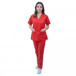Bluza cu maneca scurta are un design simplu, cu guler in V, croi drept, cu doua buzunare la nivelul taliei si un buzunar la nivelul pieptului. In lungime ajunge pana la nivelul soldurilor. Realizata din material usor, comod, care nu se sifoneaza, rezistent la spalare.