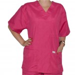 Bluza unisex cu maneca scurta, cu doua buzunare la nivelul taliei si un buzunar la nivelul pieptului cu guler in V. Realizata din material usor, lejer, placut la atingere. Nu se sifoneaza, isi pastreaza tinuta culorii, rezistenta la spalare, croiala dreapta cu maneca, lungime pana la nivelul, soldurilor.