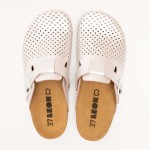 Saboti Leon 4250, de dama, din piele, alb perlat