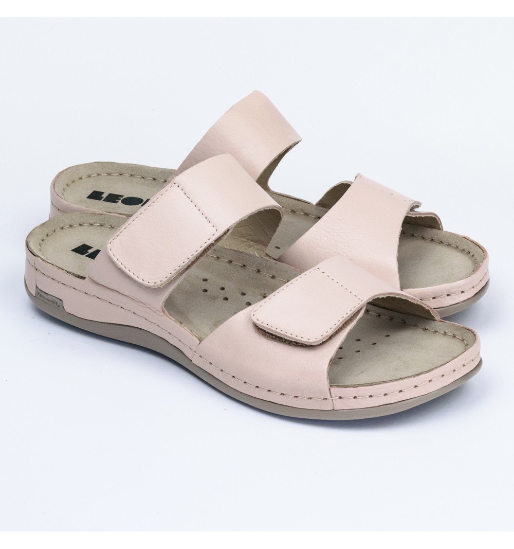 Saboti dama, din piele, de vara, Leon 952, roz pudrat