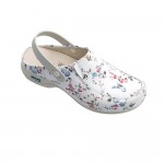 Saboti medicali din piele naturala, lavabili, cu bareta Nursingcare Wash'Go Berlin, Flower 01