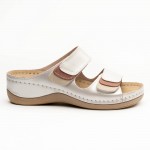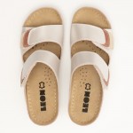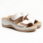 Saboti dama, de vara, din piele, Leon 904, alb perlat