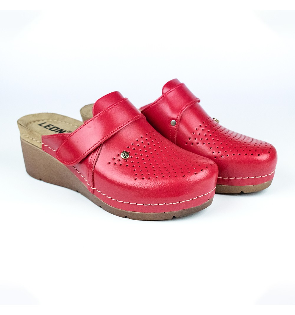 Saboti medicali, de dama, din piele, Leon 1001, rosu