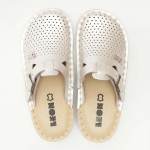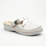 Saboti medicali, de dama, din piele, Leon V260, alb perlat