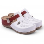 Saboti medicali, de dama, din piele, Leon 901, alb/bordo