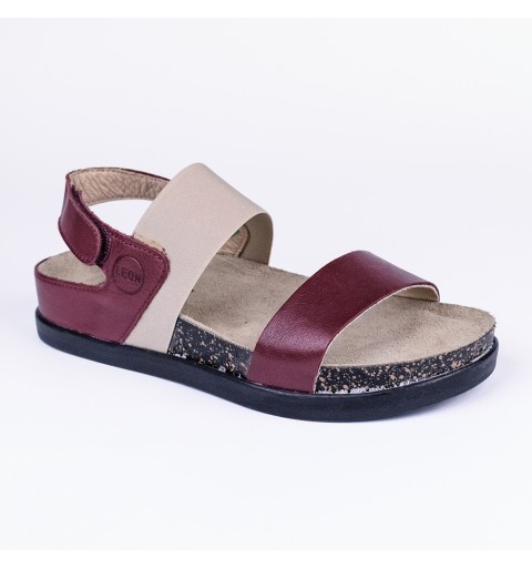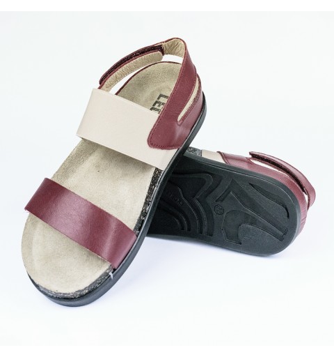 Sandale dama, de vara, din piele, Leon 1253, bordo