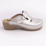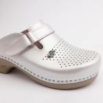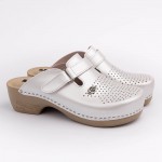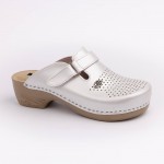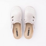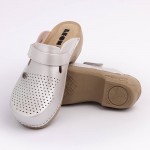 Saboti medicali, de dama, din piele, Leon PU159, alb perlat