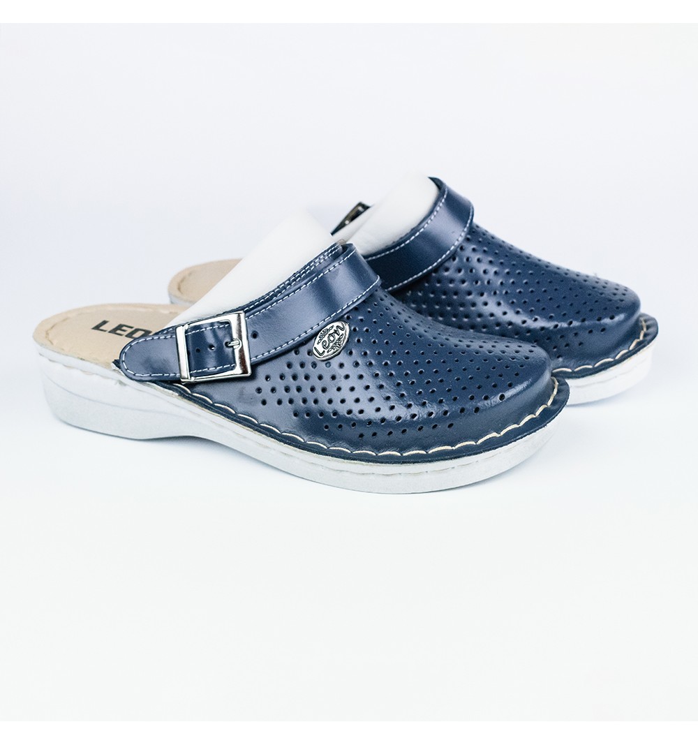 Saboti medicali, de dama, din piele, Leon V202, bleumarin