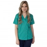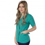 Bluza cu aspect elegant, confort maxim, rezistenta sporita, destinata industriei alimentare, farmaceutice sau spitalelor, ideal pentru utilizarea de catre medici, asistente, policlinici, etc. Bluza comoda si lejera, material usor, placut la atingere, nu se sifoneaza, isi pastreaza tinuta culorii, fiind rezistenta la spalare. Croiala dreapta, maneca scurta, inchidere la spate cu cordon.