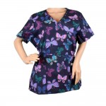 Bluza medicala imprimata Lotus 1, cu guler asimetric