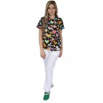 Bluza cu aspect elegant, confort maxim, rezistenta sporita, destinata industriei alimentare, farmaceutice sau spitalelor, ideal pentru utilizarea de catre medici, asistente, policlinici, etc. Bluza comoda si lejera, material usor, placut la atingere, nu se sifoneaza, isi pastreaza tinuta culorii, fiind rezistenta la spalare. Croiala dreapta, guler asimetric, inchidere cu capse, maneca scurta.