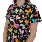 Bluza imprimata asimetrica, cu capse, Lotus 1, Dark Butterfly