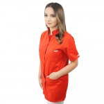 - croiala dreapta, inchidere cu capse, maneca scurta, doua buzunare mari inferioare aplicate si un buzunar superior..